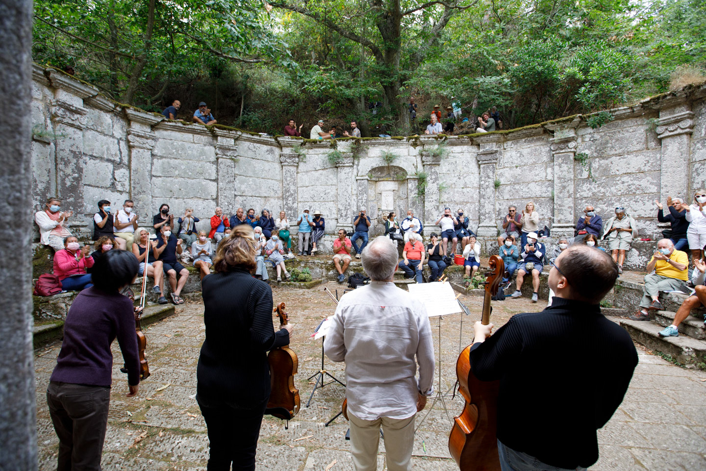alle prime luci del mattino, il pubblico s'inerpica gioiosamente verso il santuario della Madonna del Monte