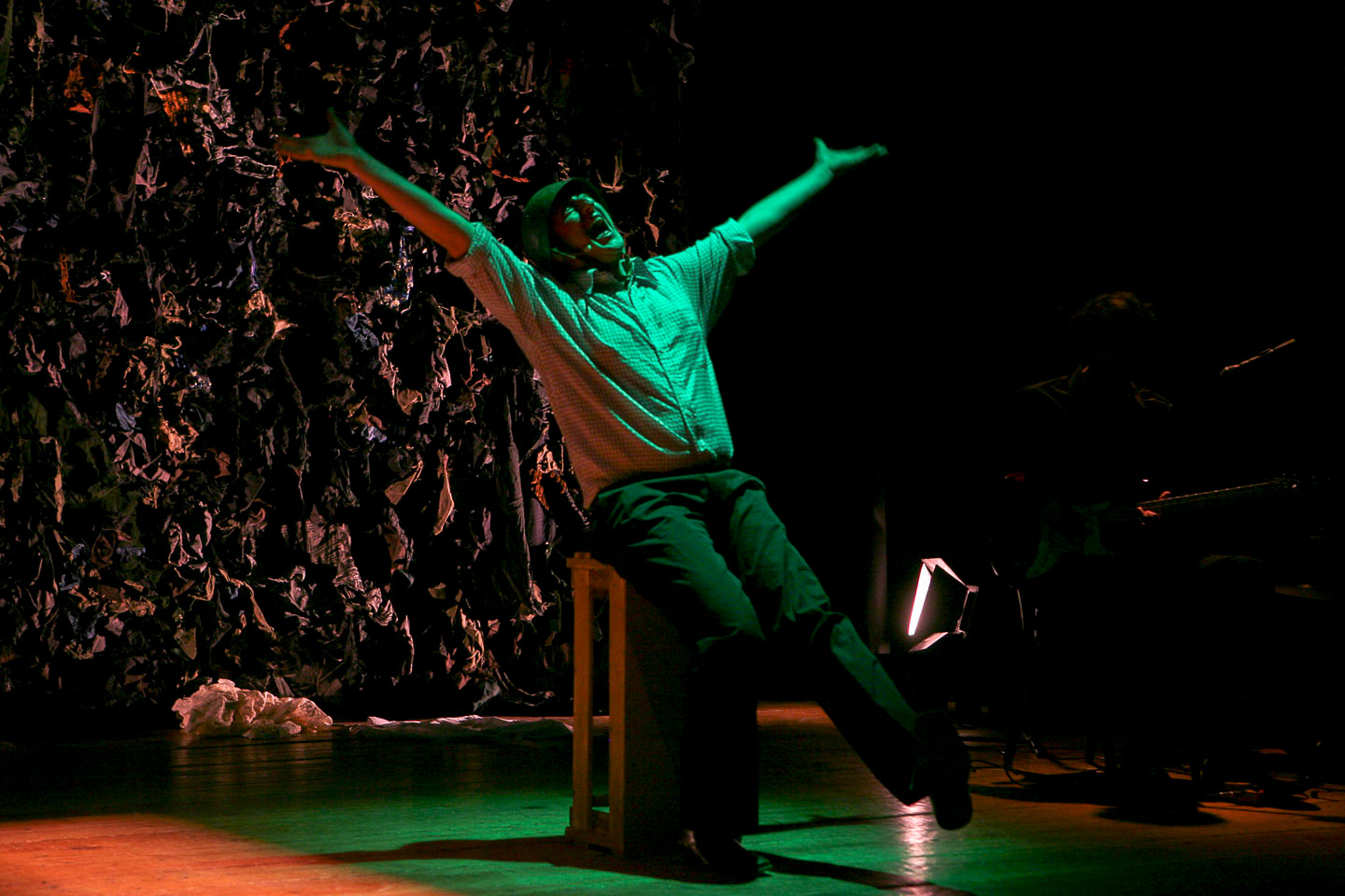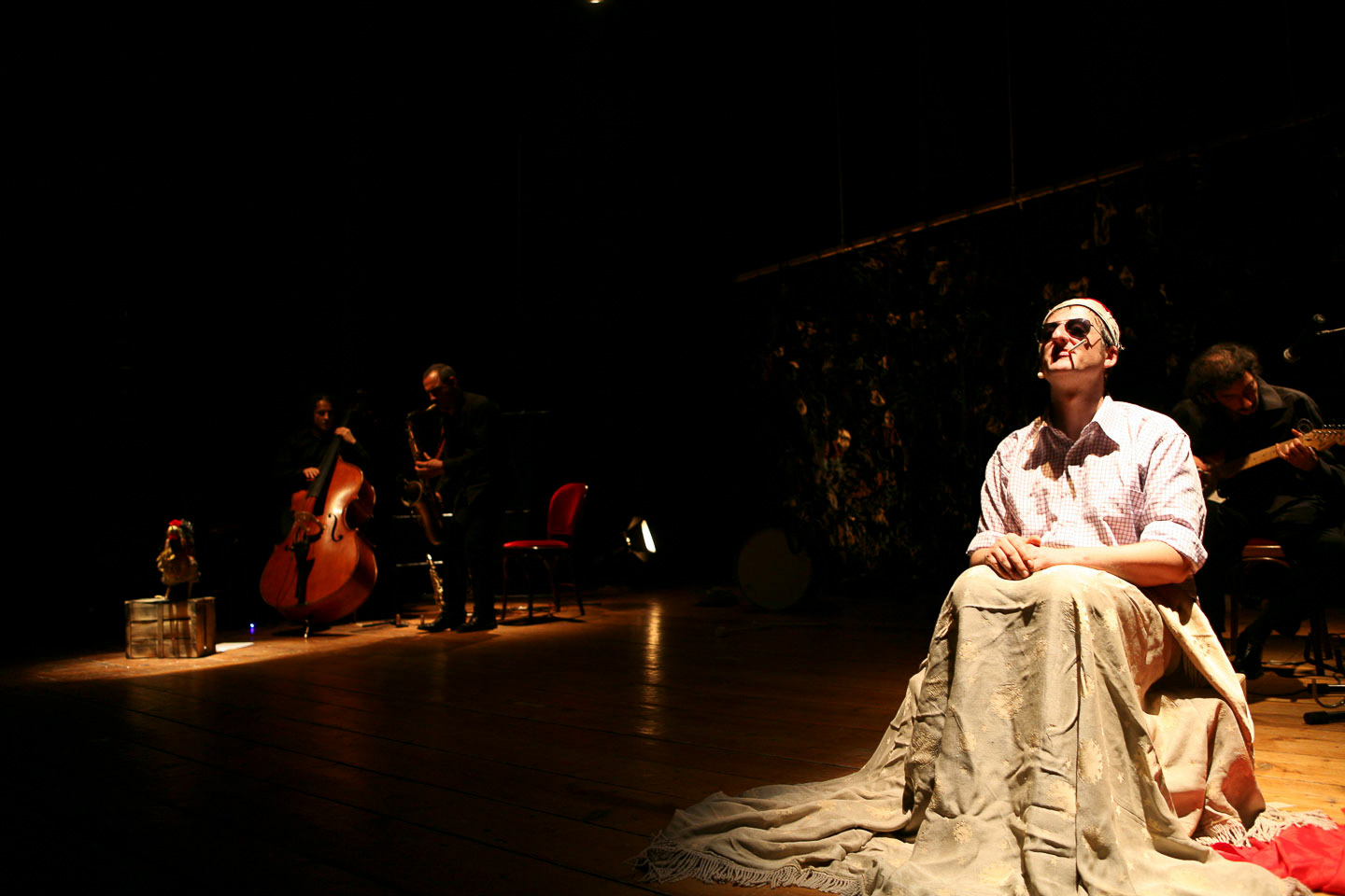 di e con Fabio Monti sassofoni e flauto : Antonio Catalfamo chitarre e violino : Daniele Lo Re contrabbasso : Alessandro Vicard. Produzione di EmmeA' Teatro